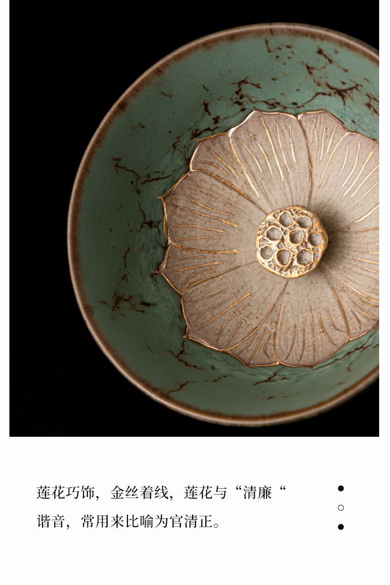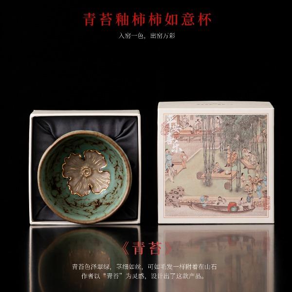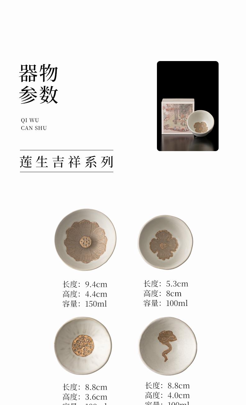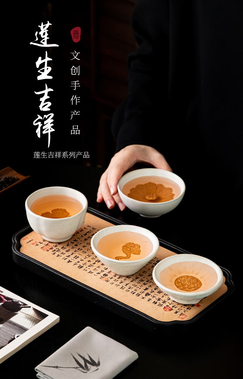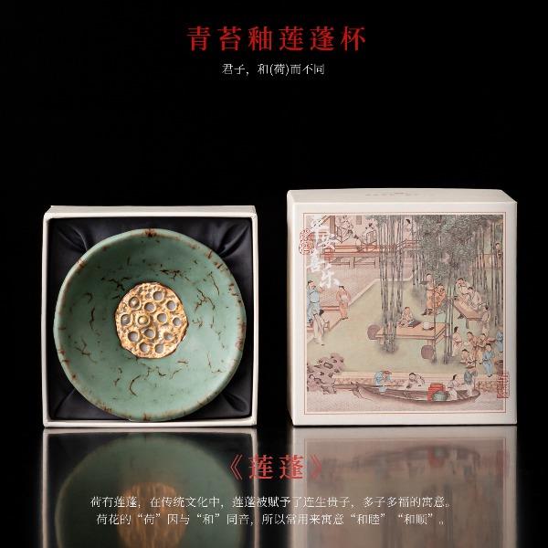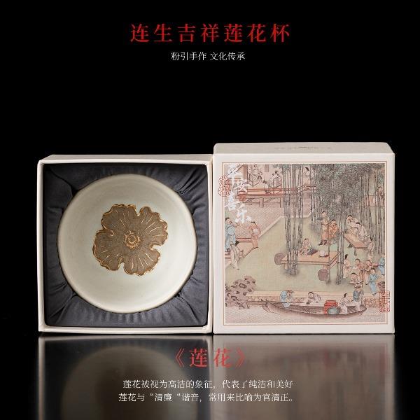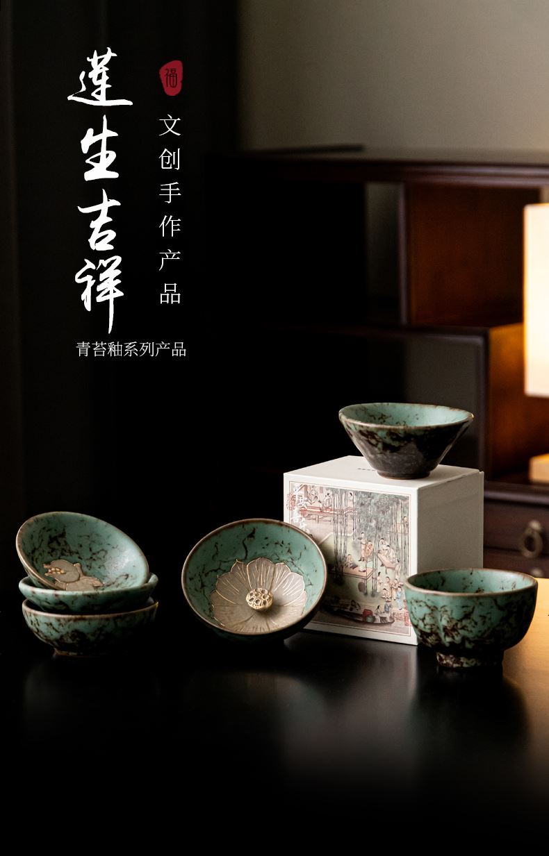 尾桥下窑复古文创青苔釉/粉引莲生吉祥主人杯茶事伴手礼开业促销 礼品已成功加入PPT!