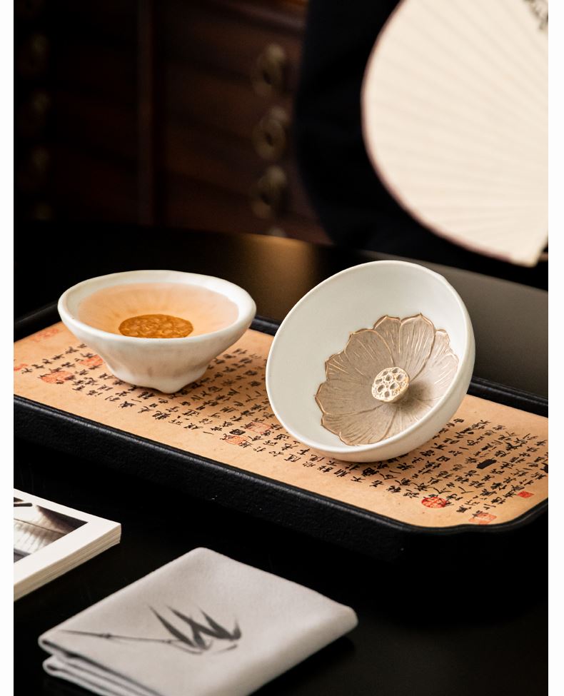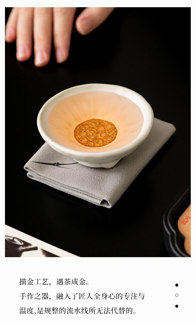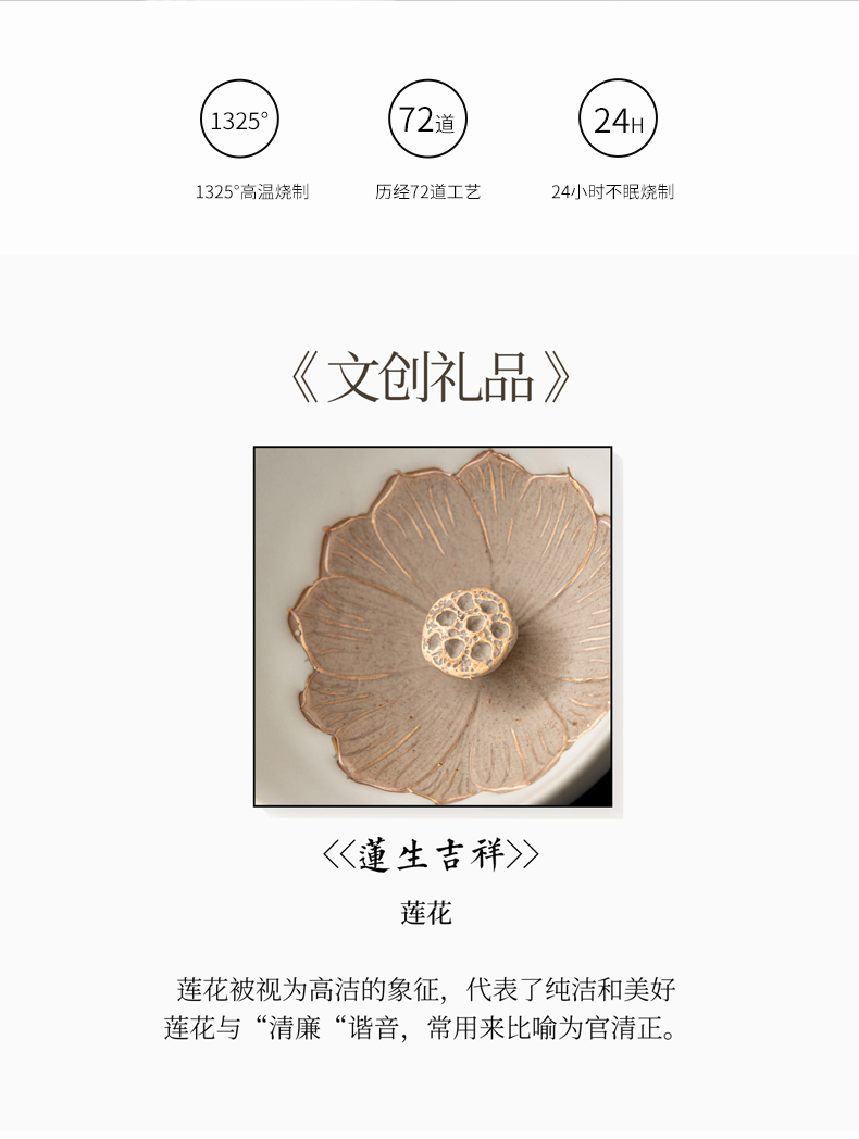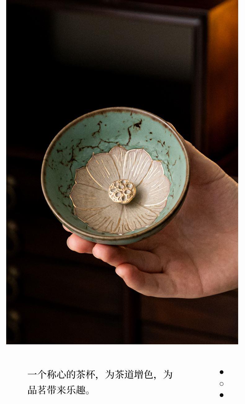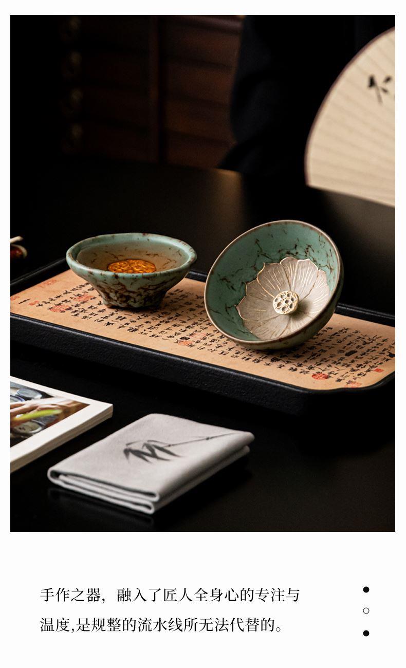 尾桥下窑复古文创青苔釉/粉引莲生吉祥主人杯茶事伴手礼开业促销 礼品已成功加入PPT!