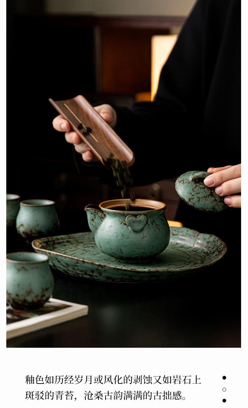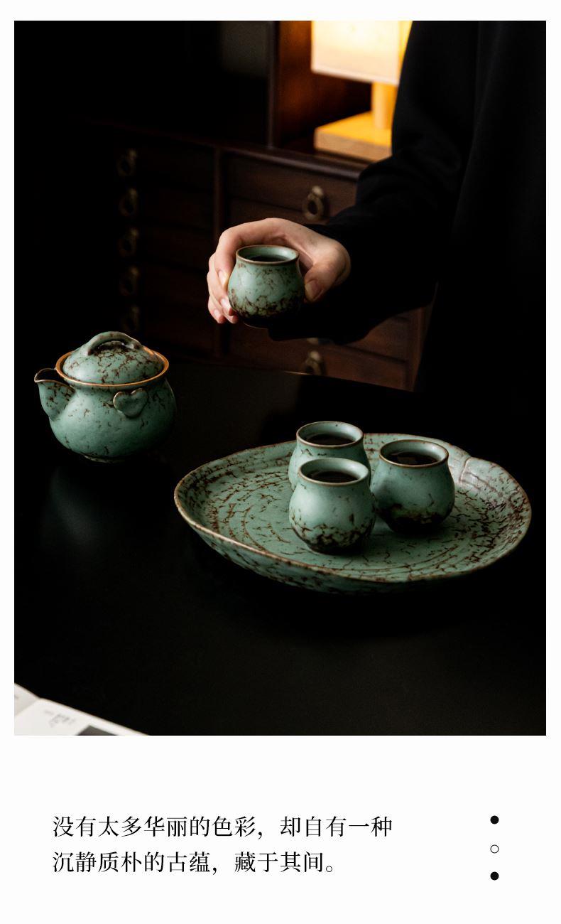 尾桥下窑文创复古青苔釉心意宝瓶壶茶具套装节日礼品茶事伴手礼